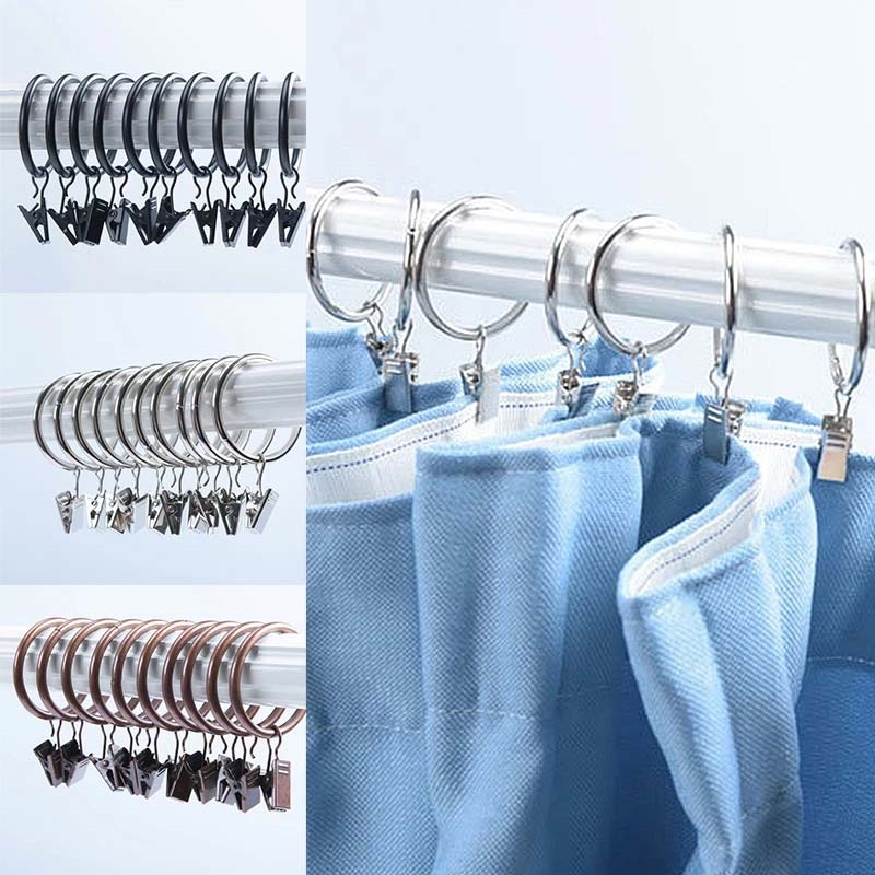 • 10-teilige Hochleistungs-Duschvorhangringe mit Klammern - rostfreie Eisenhaken, 25 mm