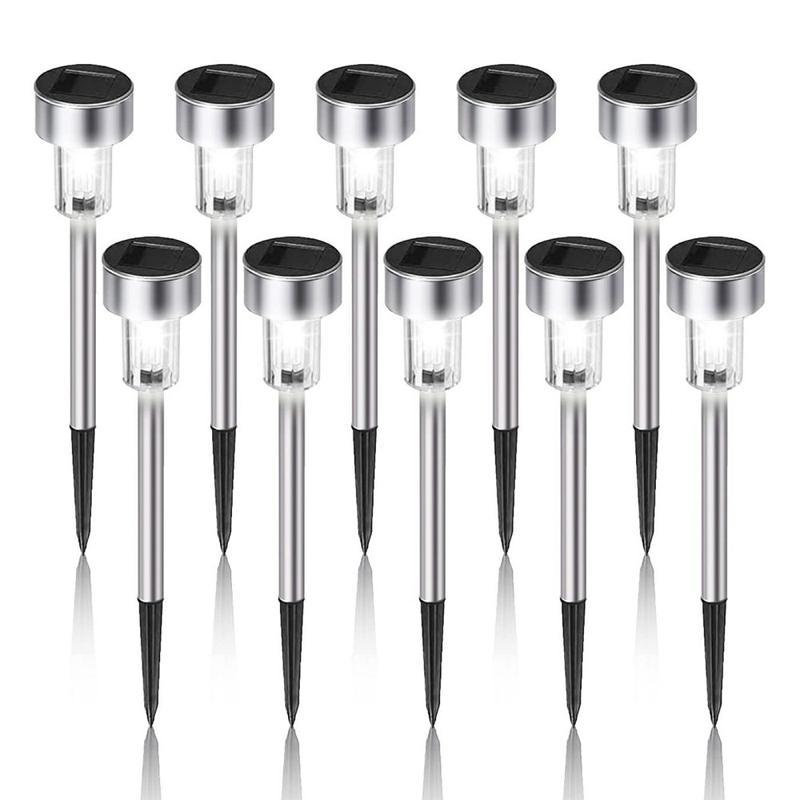 10er-Pack Solar-Edelstahl-LED-Pfadleuchten 5,5 cm - IP65 Garten- und Rasenpfahllampen
