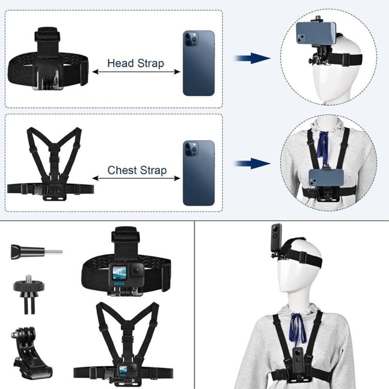 11-in-1-Zubehörset für GoPro-Actionkameras - Kopfband, Brustgurt, Kinnhalterung, Rucksackclip und Handyhalterungsset