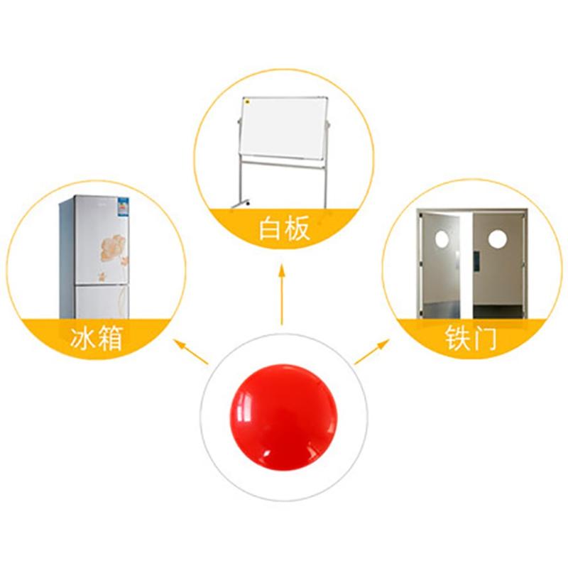 - Im Gegensatz zu Haftnotizen hinterlassen Magnetknöpfe keine Rückstände und verlängern so die Lebensdauer von Kühlschrankbeschichtungen und Whiteboard-Oberflächen.