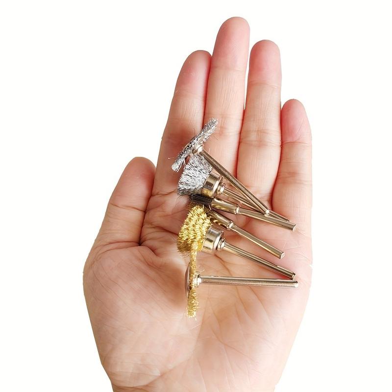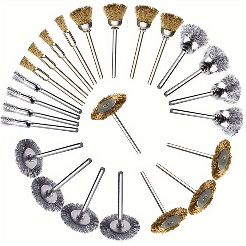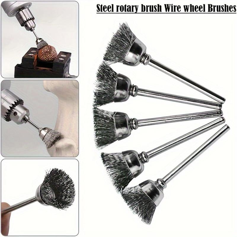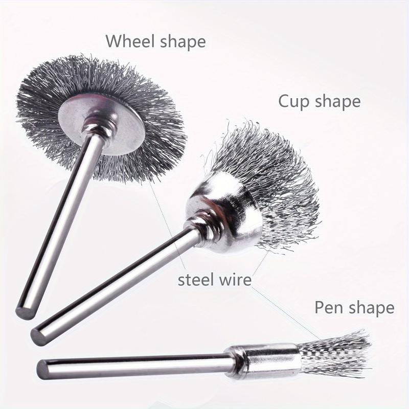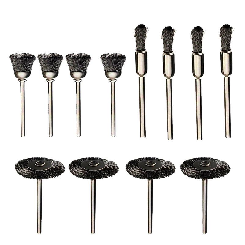 • 12 Stck. Stahldrahtbürsten-Set mit 3mm Schaft - Stift-, Schüssel- und T-Formen zum Entrosten und Polieren von Rotationswerkzeugen