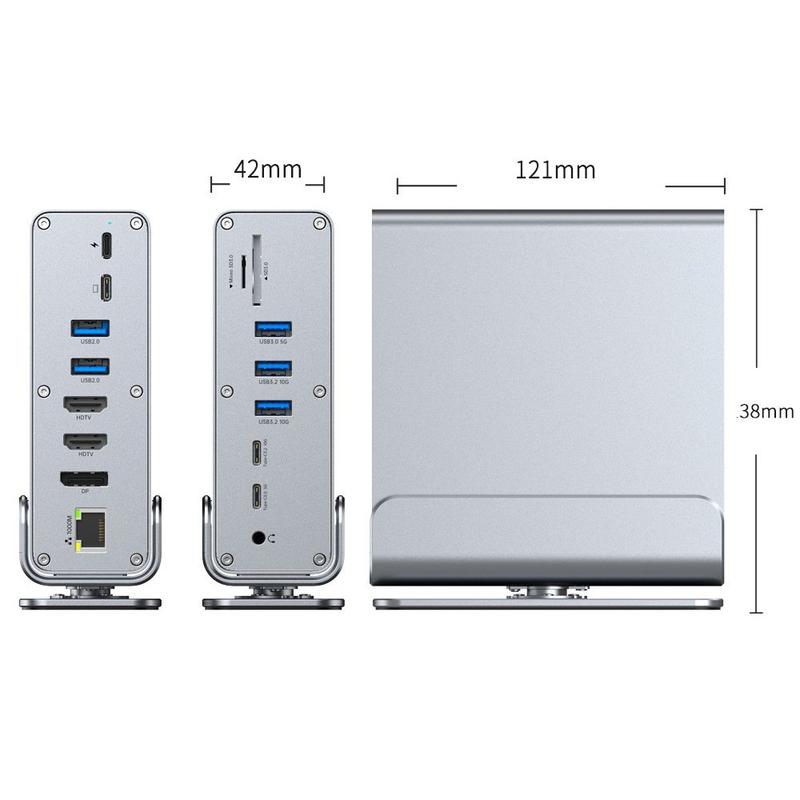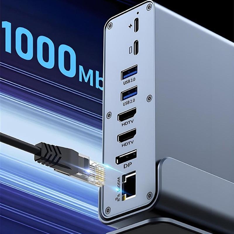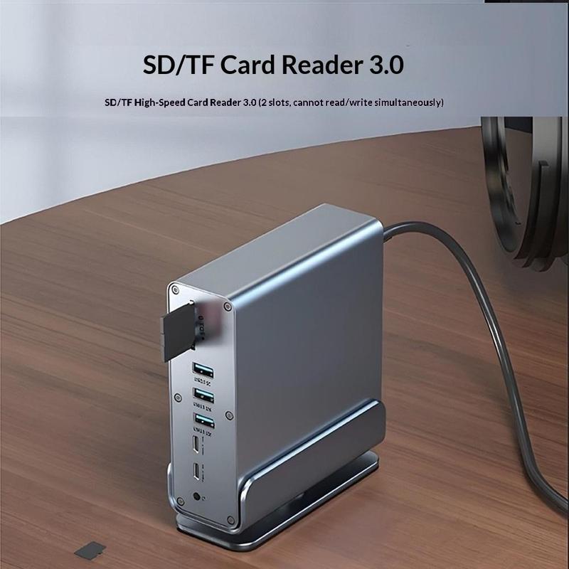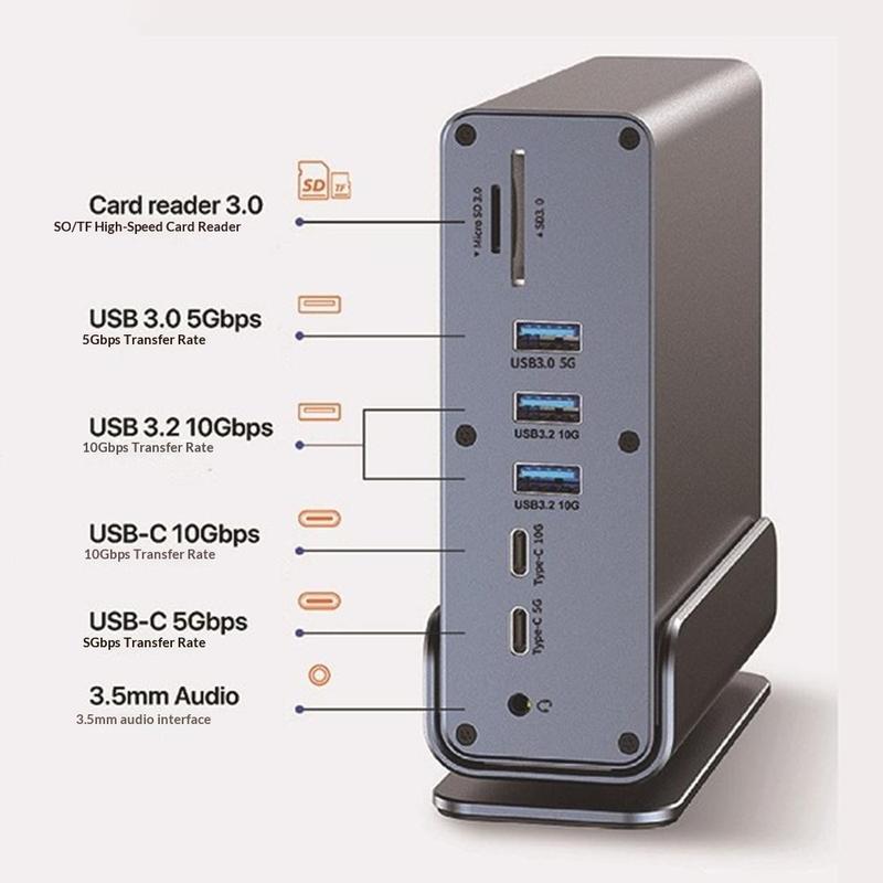 - 15-in-1-Erweiterung: USB-Anschlüsse, dreifacher Videoausgang, SD/TF-Kartenleser, Ethernet und 3,5-mm-Audioanschluss in einem Hub