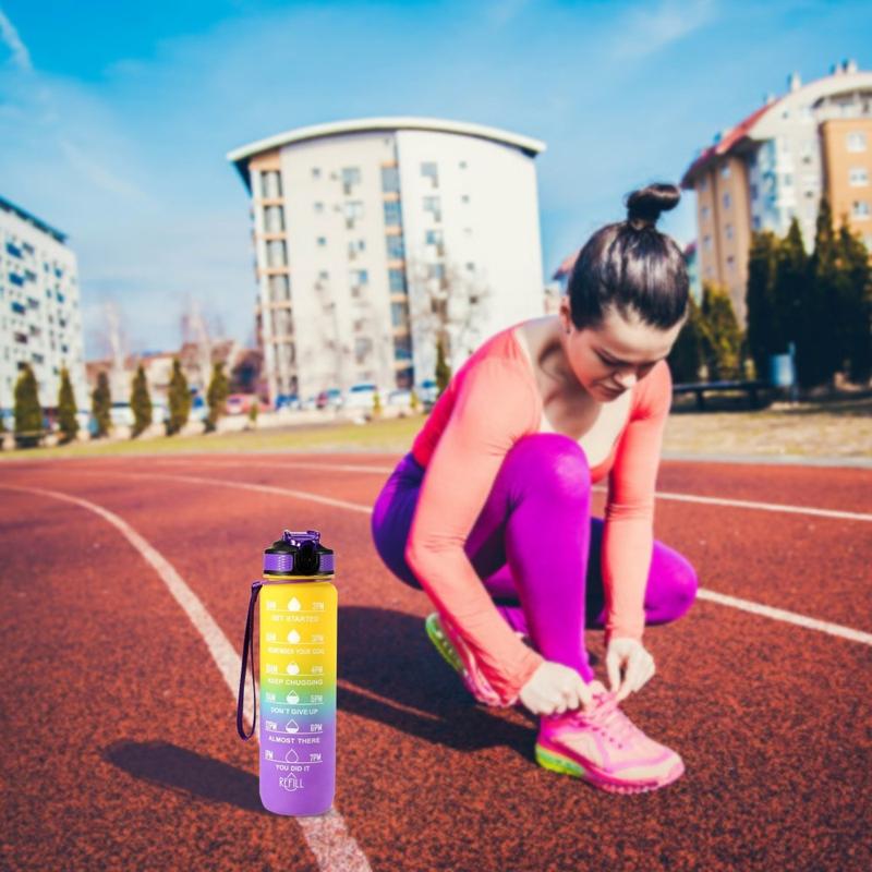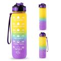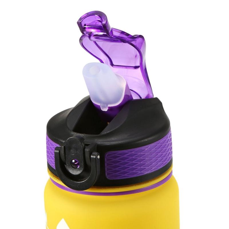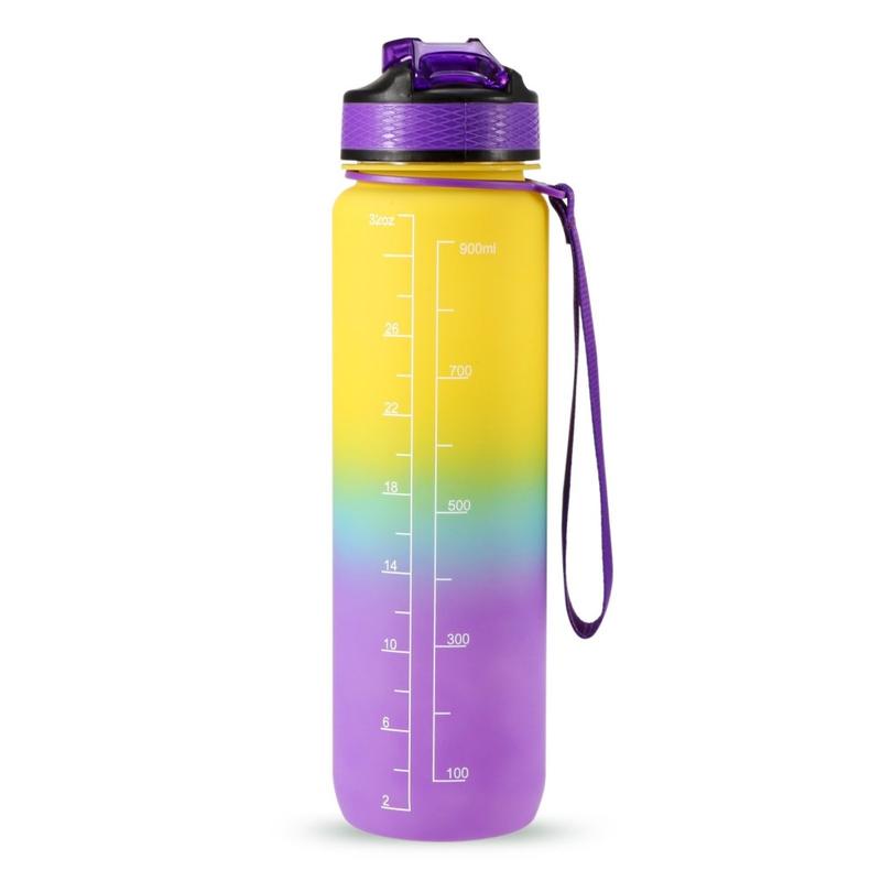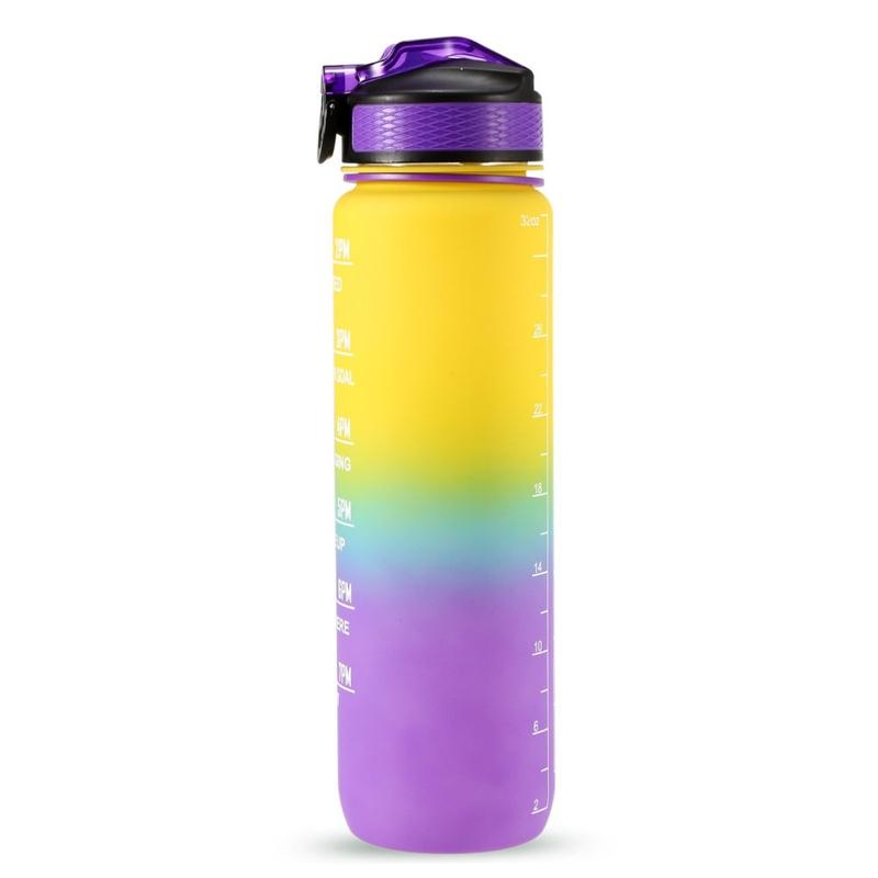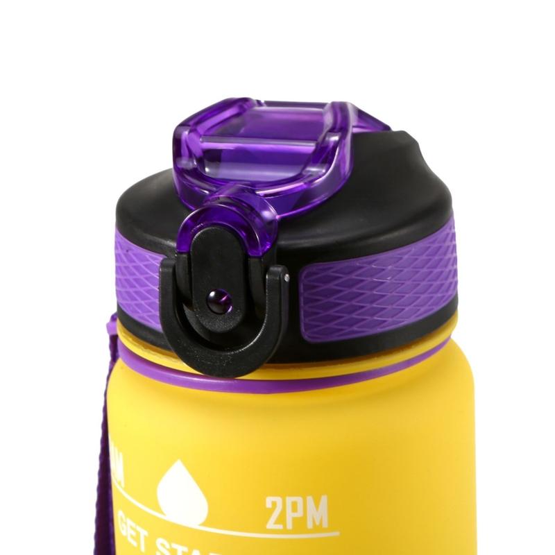 1L Sport-Wasserflasche mit Zeitmarkierung Wasserkrug auslaufsicherer Trinkwasserkocher für Büro Schule Camping (BPA-frei) - Gelb/Violett