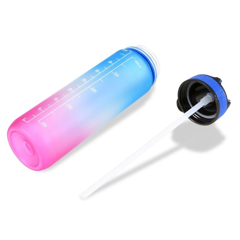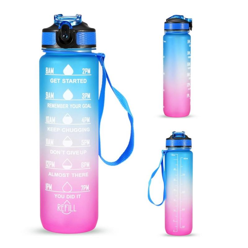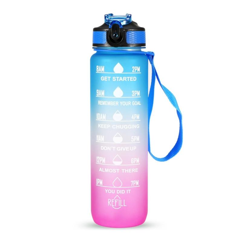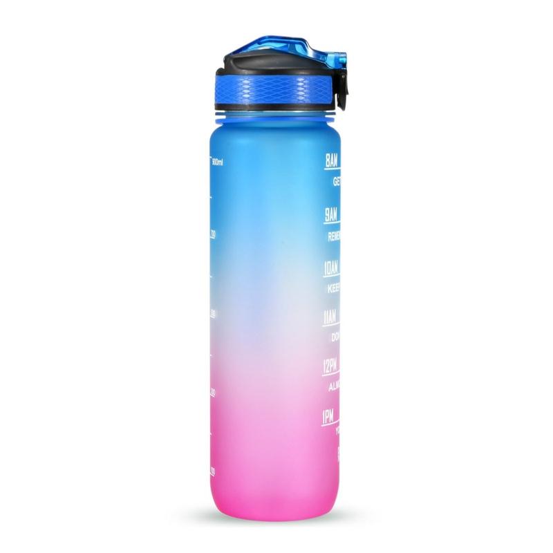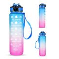 1L Sport-Wasserflasche mit Zeitmarkierung Wasserkrug Auslaufsicherer Trinkwasserkocher für Büro Schule Camping (BPA-frei) - Blau/Lila