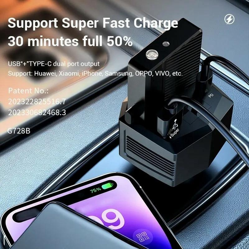 Verbessern Sie Ihr Ladeerlebnis unterwegs mit diesem vielseitigen 2-in-1-Gerät, das sowohl als Hochgeschwindigkeits-Autoladegerät als auch als tragbare Powerbank fungiert. Es wurde für die Kompatibilität mit iOS-, Android- und Typ-C-Geräten entwickelt und sorgt dafür, dass Ihre Geräte auf Reisen oder in Notfällen mit Strom versorgt bleiben.