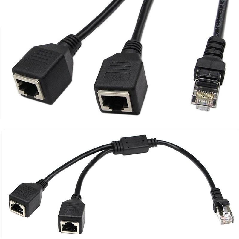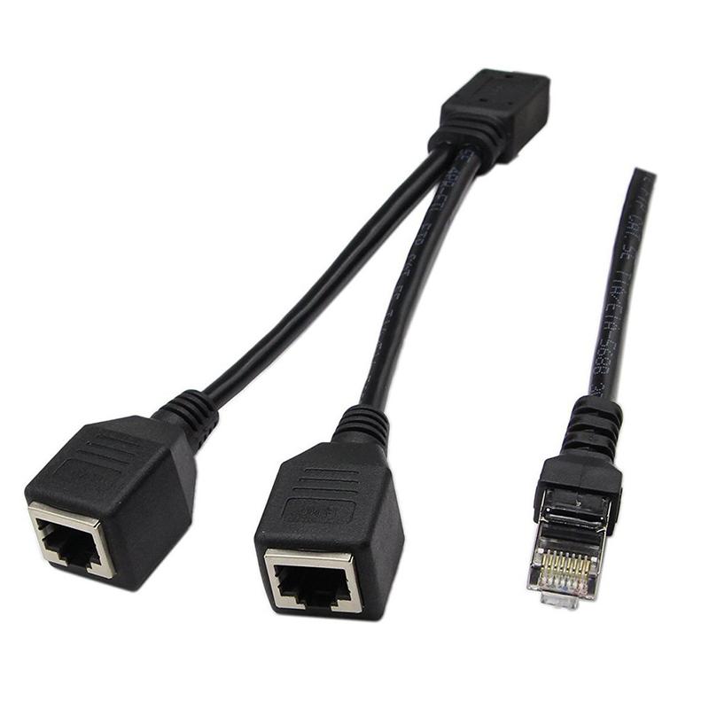 - Zwei RJ45-Buchsen: Wandelt einen RJ45-Stecker in zwei RJ45-Buchsen um, so dass zwei Geräte eine einzige Ethernet-Verbindung nutzen können.