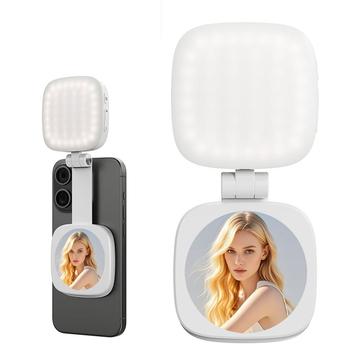 Mit diesem 2-in-1 Magnetic LED Selfie Fill Light, das für Smartphones und die Fotografie unterwegs entwickelt wurde, können Sie jederzeit eine perfekte Beleuchtung erzielen. Die hochwertigen LED-Perlen liefern eine weiche, gleichmäßige Beleuchtung, die Selfies, Porträts und Videotelefonate in schwach beleuchteten Umgebungen aufwertet. Dank der intelligenten Magnetbefestigung lässt sich die Lampe sicher an Ihrem Gerät befestigen, so dass Sie die Hände frei haben, und der integrierte Make-up-Spiegel ermöglicht es Ihnen, sich vor dem Filmen oder Fotografieren schnell zurechtzumachen. Dank des integrierten Akkus und des kompakten Designs (149 g) ist dieses tragbare Beleuchtungszubehör ideal für Reisen, Vlogging, Livestreaming und alltägliche mobile Fotografie.