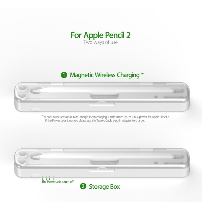• 2-in-1 tragbares kabelloses Ladegerät für Apple Pencil (2. Generation) / (1. Generation) Kabellose / kabelgebundene Ladebox mit integrierter Batterie