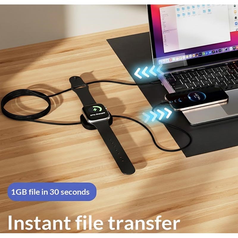 Dieses 2-in-1-Schnellladekabel macht Schluss mit dem Kabelsalat, indem es einen leistungsstarken 100-W-PD-Anschluss mit einem magnetischen Apple Watch-Ladegerät kombiniert. Der starke Magnet sorgt für eine perfekte, sorgenfreie Ausrichtung, während der Kupferkern die Effizienz erhöht und die Gerätebatterien während des Schnellladens schützt. Durch die breite Protokollkompatibilität ist es ideal für Benutzer mit mehreren Geräten und bietet Geschwindigkeit, Komfort und langfristige Zuverlässigkeit in einem kompakten Zubehörteil.