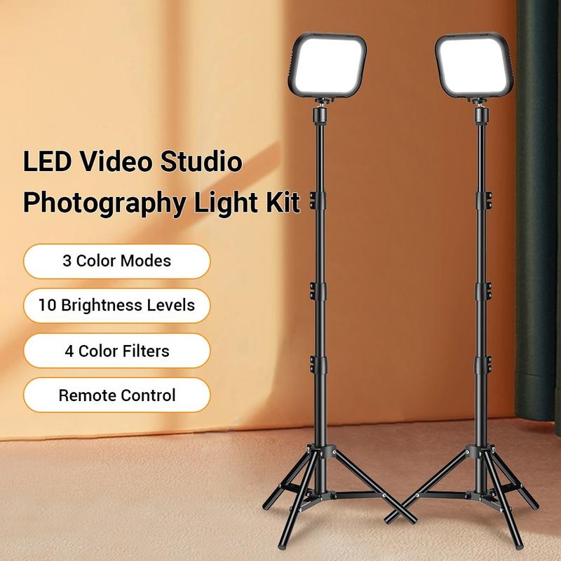 2 LED-Leuchten auf verstellbarem Stativ und 4 Farbfilter für Foto und Video