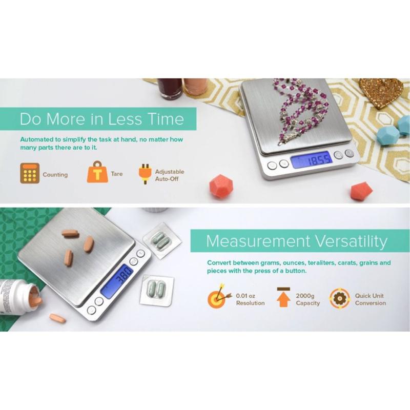 • 2000g/0.1g Digitale Taschenwaage Schmuck Küchenwaage mit hintergrundbeleuchtetem LCD