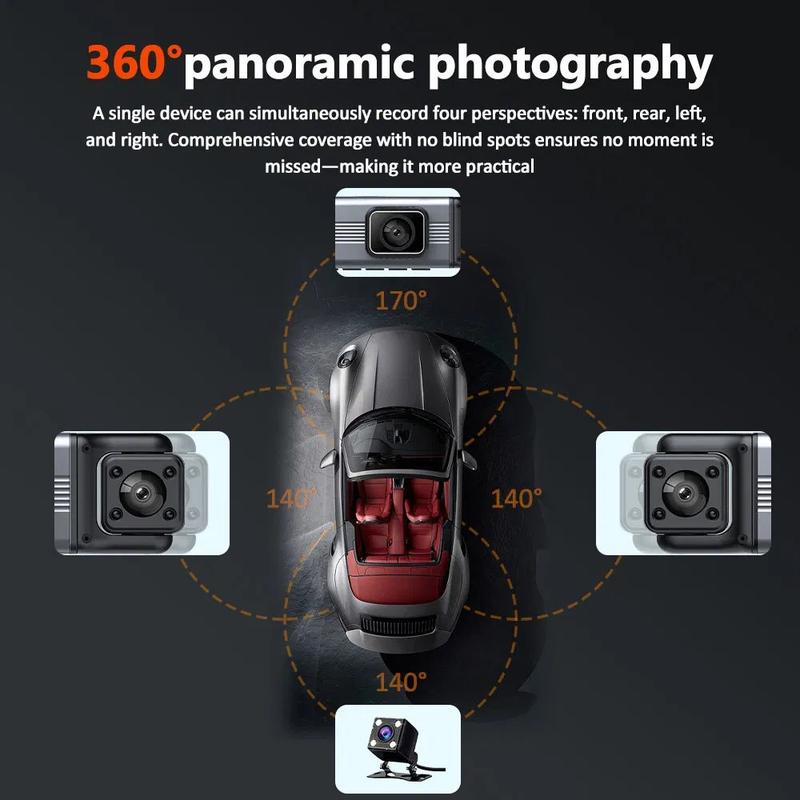 3.0" IPS 1080P 4-Linsen Dash Cam mit Front-, Heck- & Seitenaufzeichnung - Weitwinkel Fahrzeug DVR