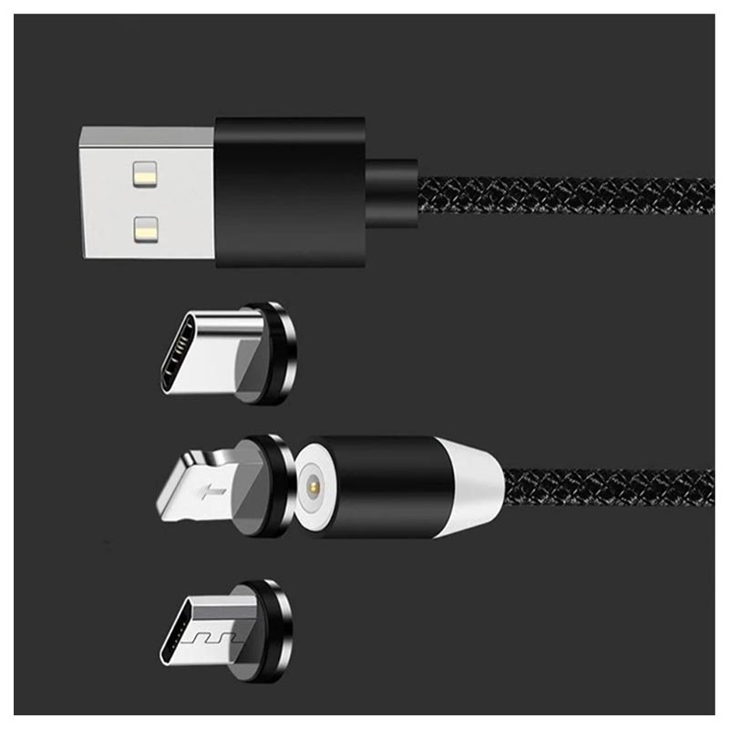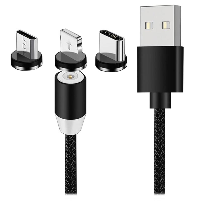 Magnetisches 3-in-1 LED USB-Kabel - Lightning, USB-C, MicroUSB - 1m
