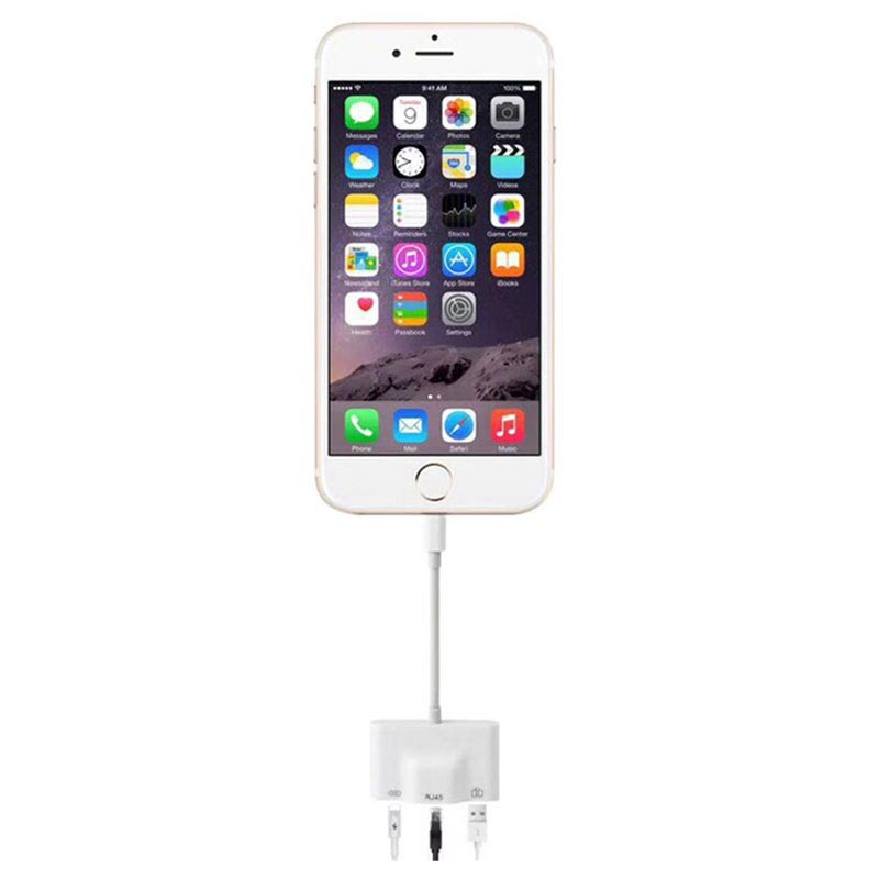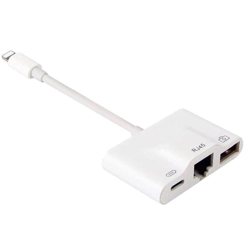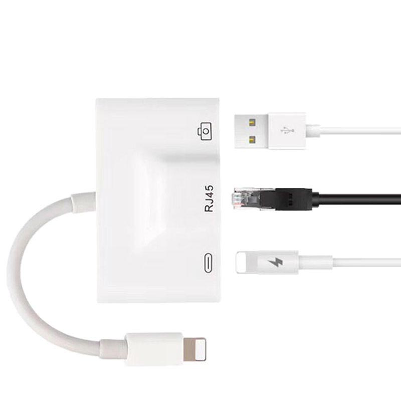 3-in-1 Lightning zu RJ 45 Ethernet-Netzwerkadapter mit USB- und Lightning-Anschluss