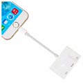 - Mit dem zusätzlichen 8-poligen Lightning-Anschluss können Sie Ihr Gerät während der Verwendung des Adapters aufladen