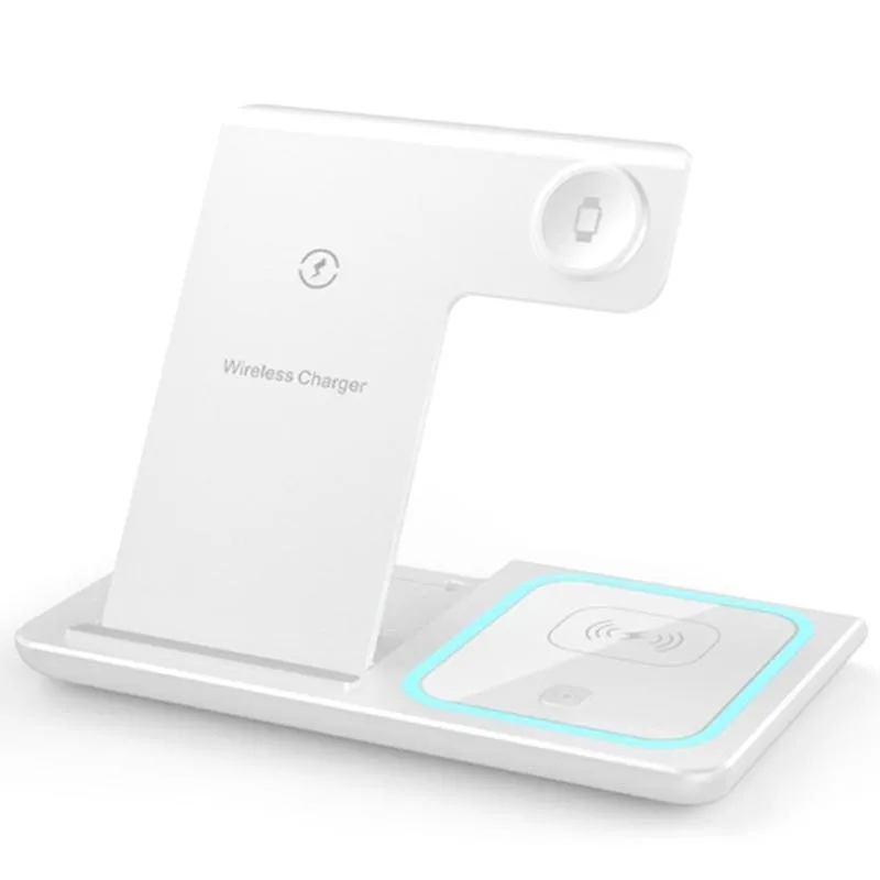 Machen Sie Ihr Aufladen bequemer, legen Sie einfach Ihre Geräte, und diese 3-in-1 tragbare kabellose Ladestation macht alle notwendigen Ladevorgänge. Sie unterstützt eine breite Palette von Android- und Apple-Telefonen mit kabelloser Ladefunktion sowie eine vollständige Palette von Apple-Uhren und Airpods mit kabelloser Ladefunktion.