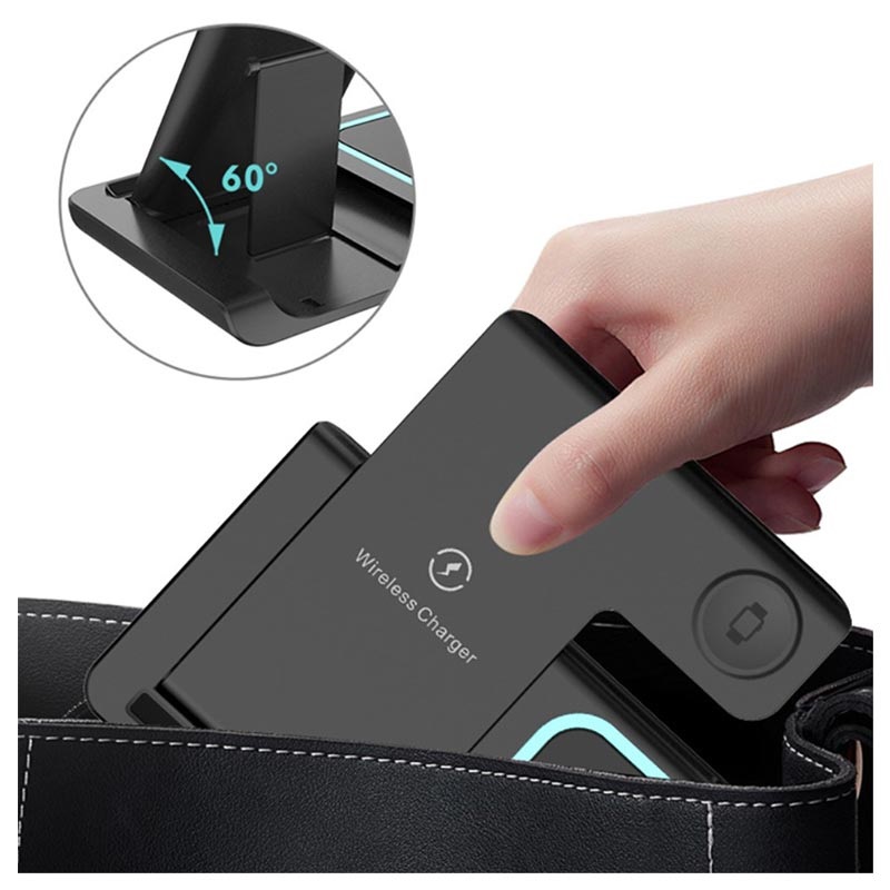 Mit dieser 3-in-1 tragbaren kabellosen Ladestation können Sie 3 verschiedene Geräte gleichzeitig aufladen.
