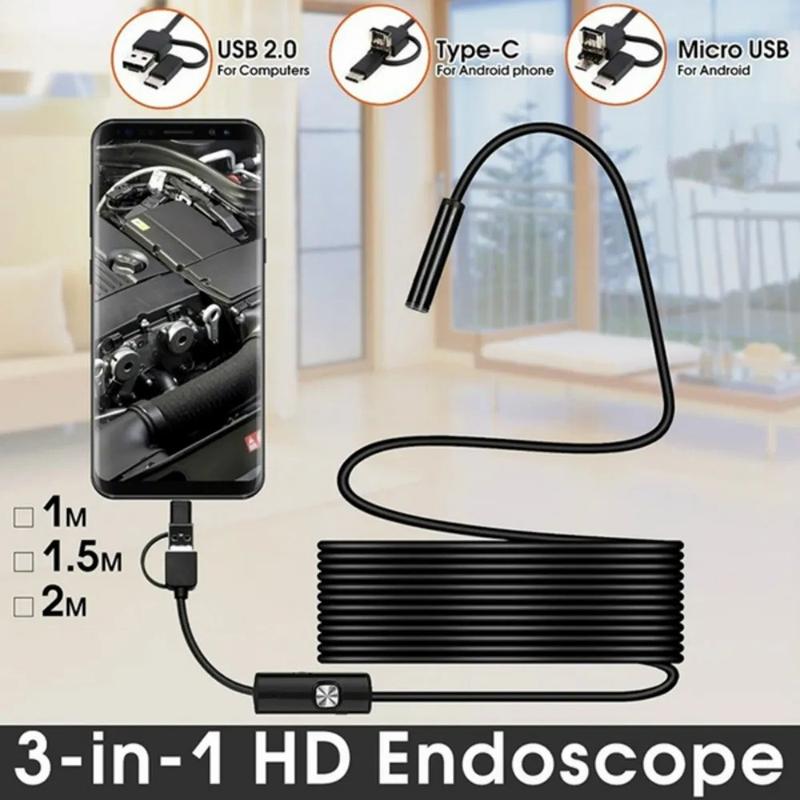 3-in-1 wasserdichte 7mm Endoskopkamera für Mobiltelefone - USB, MicroUSB, Typ-C - 3.5m