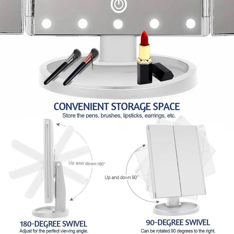 Bringen Sie Licht in Ihre Beauty-Routine mit dem 3-seitig klappbaren LED-Schminkspiegel, der Präzision, Helligkeit und Flexibilität für eine makellose Make-up-Anwendung bietet. Mit der einstellbaren Beleuchtung und den verschiedenen Vergrößerungsoptionen können Sie mit diesem eleganten Tischspiegel auch zu Hause Ergebnisse in Salonqualität erzielen.