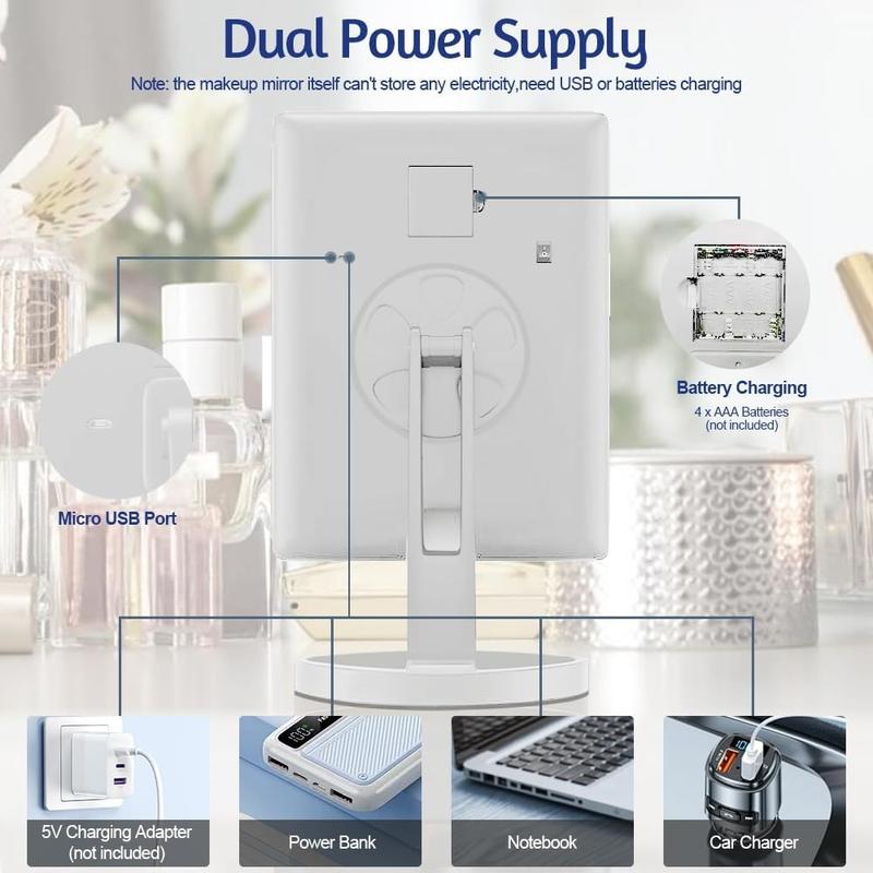 - Mehrere Vergrößerungsoptionen - Mit 1facher, 2facher und 3facher Vergrößerung sowie einem abnehmbaren 10fachen Rundspiegel können Sie sich auf feine Details wie Eyeliner, Wimpern und präzise Hautpflege konzentrieren.