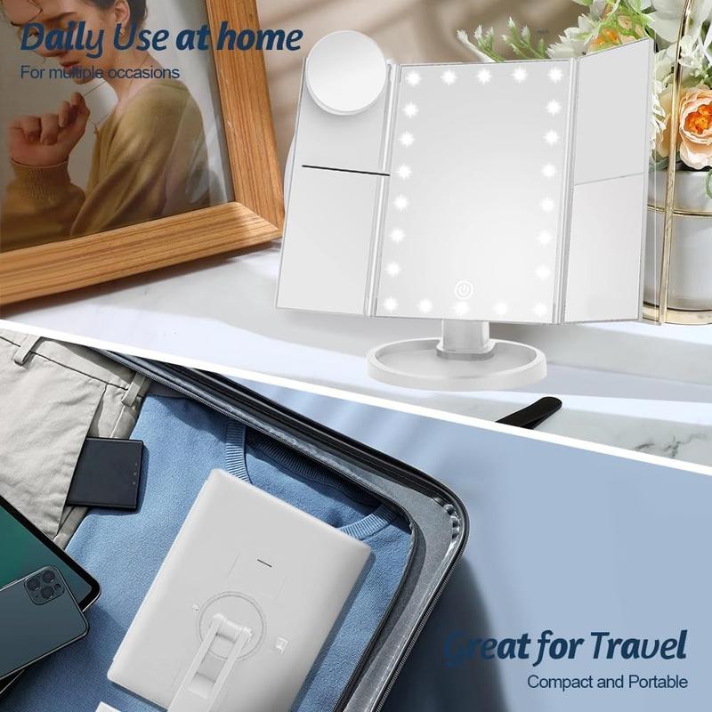 3-seitig klappbarer Schminkspiegel mit 22 LED-Leuchten - 1X/2X/3X/10X Vergrößerungsspiegel für den Kosmetikspiegel