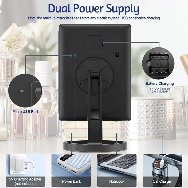 - Mehrere Vergrößerungsoptionen - Mit 1facher, 2facher und 3facher Vergrößerung sowie einem abnehmbaren 10fachen Rundspiegel können Sie sich auf feine Details wie Eyeliner, Wimpern und präzise Hautpflege konzentrieren.