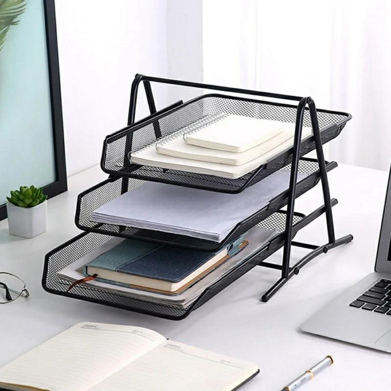 3-stufiger, stapelbarer Metallgitter-Ordner - Bändigt das Papierchaos mit luftigem, haltbarem Stil