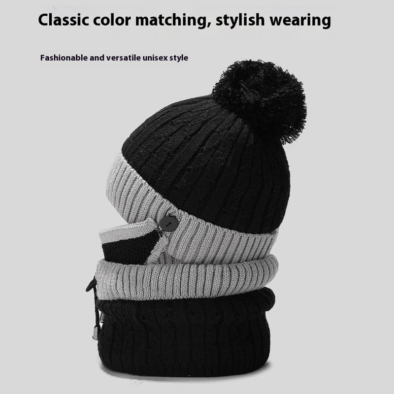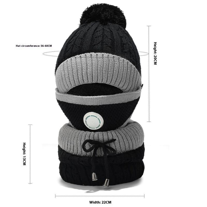 3-teilige winterliche winddichte Strickmütze, Gesichtsmaske und Halswärmer