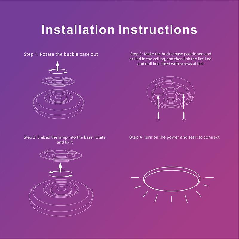 Genießen Sie dynamische Lichteffekte, Musiksynchronisation und 24 integrierte Szenenmodi, die an Ihre Vorlieben angepasst werden können. Mit intelligenter Zeitplanung, Sonnenaufgang/Sonnenuntergang-Automatisierung und DIY-Beleuchtungsplänen verleiht diese Deckenleuchte Ihrem Wohnzimmer, Schlafzimmer, Essbereich oder Büro sowohl Funktionalität als auch Atmosphäre. Mit hocheffizienten 30W-LEDs und einer Lebensdauer von 20000 Stunden ist sie ein modernes Herzstück, das sowohl für Leistung als auch für Eleganz ausgelegt ist.