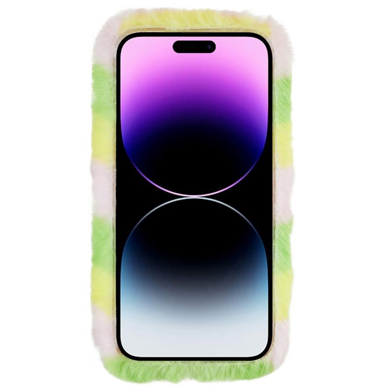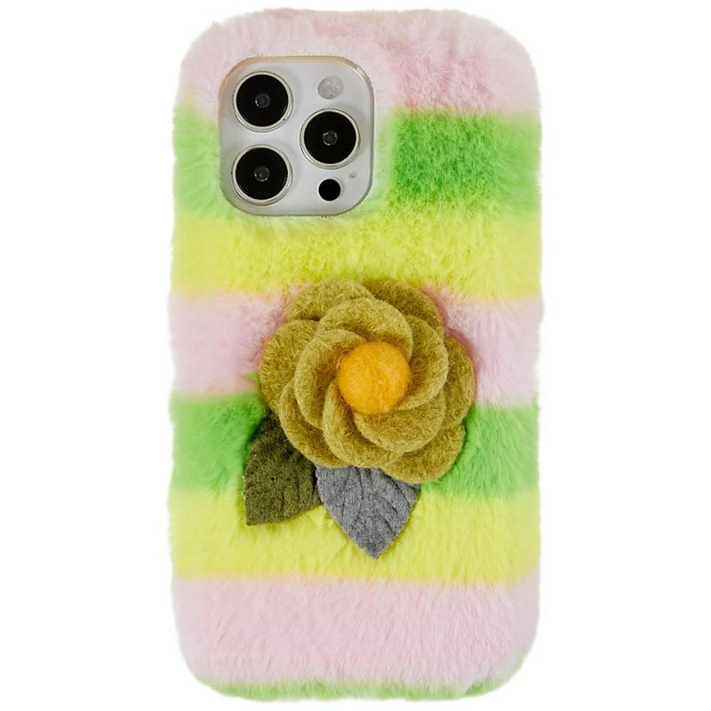 3D Plush Pelziger Winter iPhone 14 Pro Max TPU Hülle - Gelb Rosa