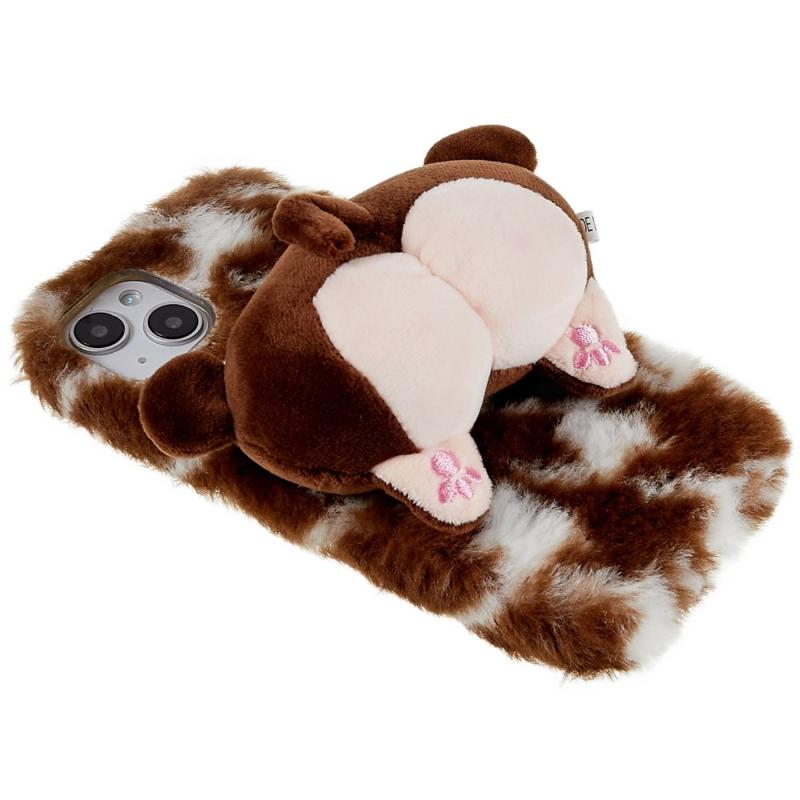 Winter Furry Phone Case for iPhone 14 Plus, Anti-scratch Cover Protective Shell with 3D Plush Doll