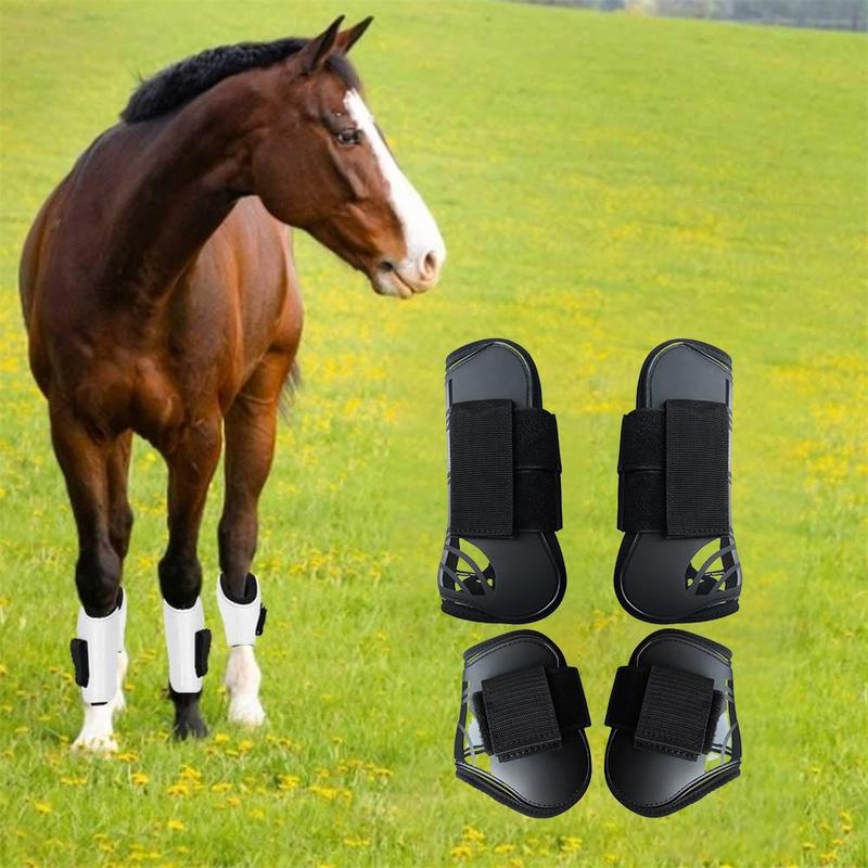 • 4-teilige Sehnen- und Fesselgelenkstiefel für Pferde - Größe L - PU-Schale, Neopren-gefüttert, stoßdämpfendes Set