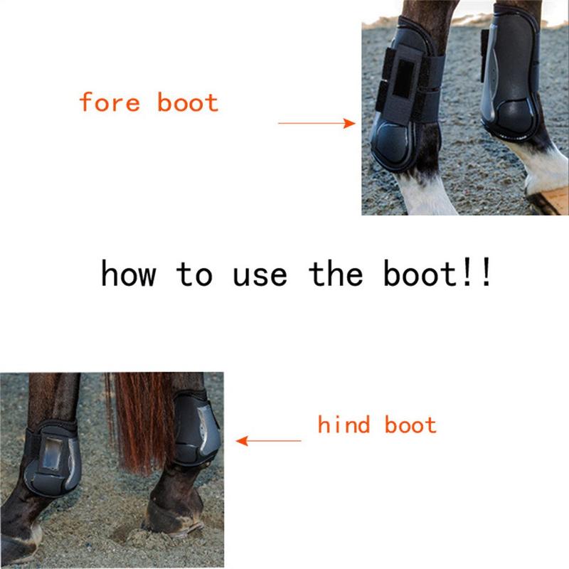 - Anatomische Formgebung: Vordere Stiefel 255 x 112 mm zur Abdeckung der Sehnen; hintere Stiefel 158 x 118 mm zum Schutz des hinteren Fesselgelenks.
