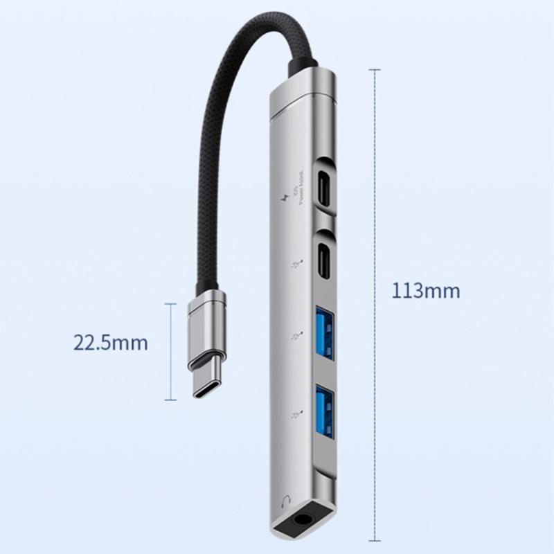 Verbessern Sie die Konnektivität Ihres Laptops oder Tablets mit diesem leichten 5-in-1 Typ-C-Hub, der wichtige Anschlüsse in einem eleganten Zubehörteil vereint. Er ist aus einer Aluminiumlegierung und TPE-Materialien gefertigt und bewältigt sowohl die Datenübertragung als auch das Aufladen von Geräten effizient und bietet gleichzeitig eine hervorragende Wärmeableitung. Ganz gleich, ob Sie einen externen Speicher, eine Maus oder Kopfhörer anschließen möchten, dieser Hub sorgt für zuverlässige Plug-and-Play-Leistung und steigert die Produktivität unterwegs.