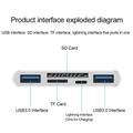 Verbessern Sie Ihre mobile Produktivität mit diesem vielseitigen 5-in-1-USB-Hub. Mit zwei USB 3.0-Anschlüssen, einem Lightning-Anschluss, einem Type-C-Anschluss und dedizierten SD/TF-Kartensteckplätzen verbindet dieser kompakte Adapter nahtlos Flash-Laufwerke, Controller, Mäuse und mehr mit Ihrem Smartphone oder Tablet. Egal, ob Sie Dateien durchsuchen, spielen oder einfach nur Daten zwischen Geräten übertragen, sein Plug-and-Play-Design sorgt für ein effizientes und problemloses Erlebnis.