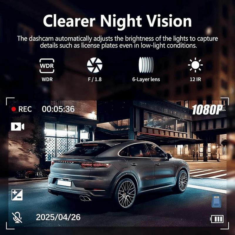 - G-Sensor + Loop-Aufzeichnung: Speichert automatisch Aufnahmen von Unfällen und überschreibt alte Dateien, wenn der Speicher voll ist