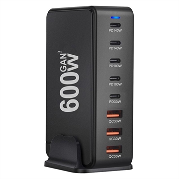 600W GaN Desktop-Ladestation - 8 Anschlüsse (5x USB-C + 3x USB-A) PD3.1 Schnellladegerät, bis zu 140W USB-C, intelligente Stromverteilung