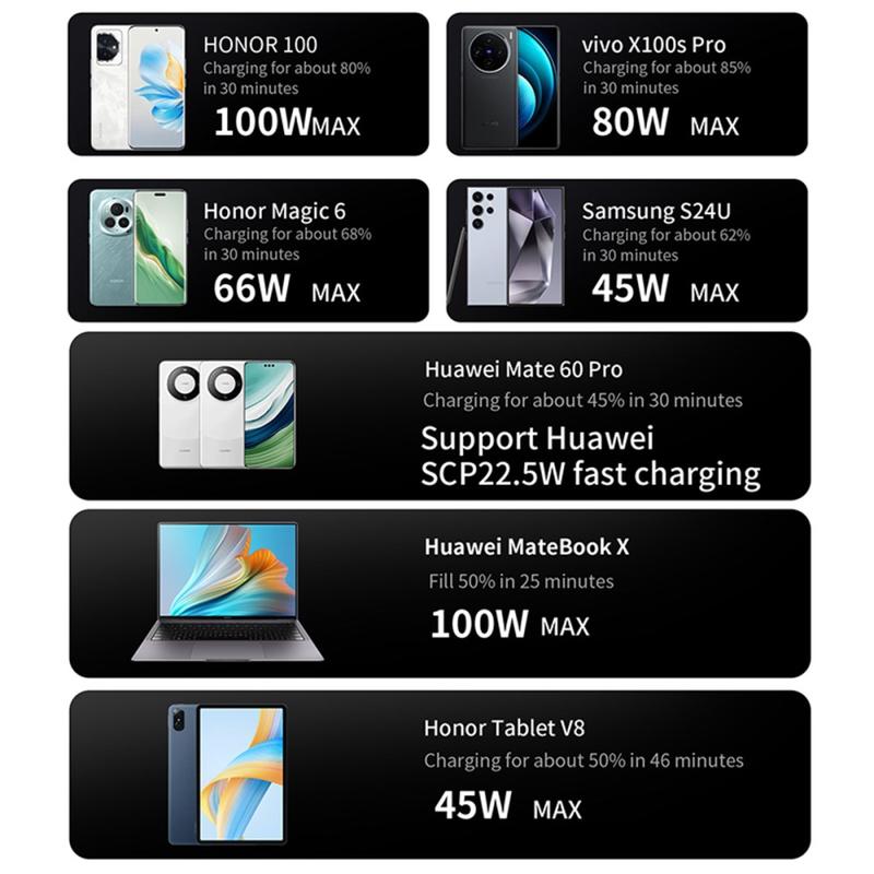 - Unterstützung für schnelles Laden: PD3.1, QC3.0 und andere Mainstream-Standards