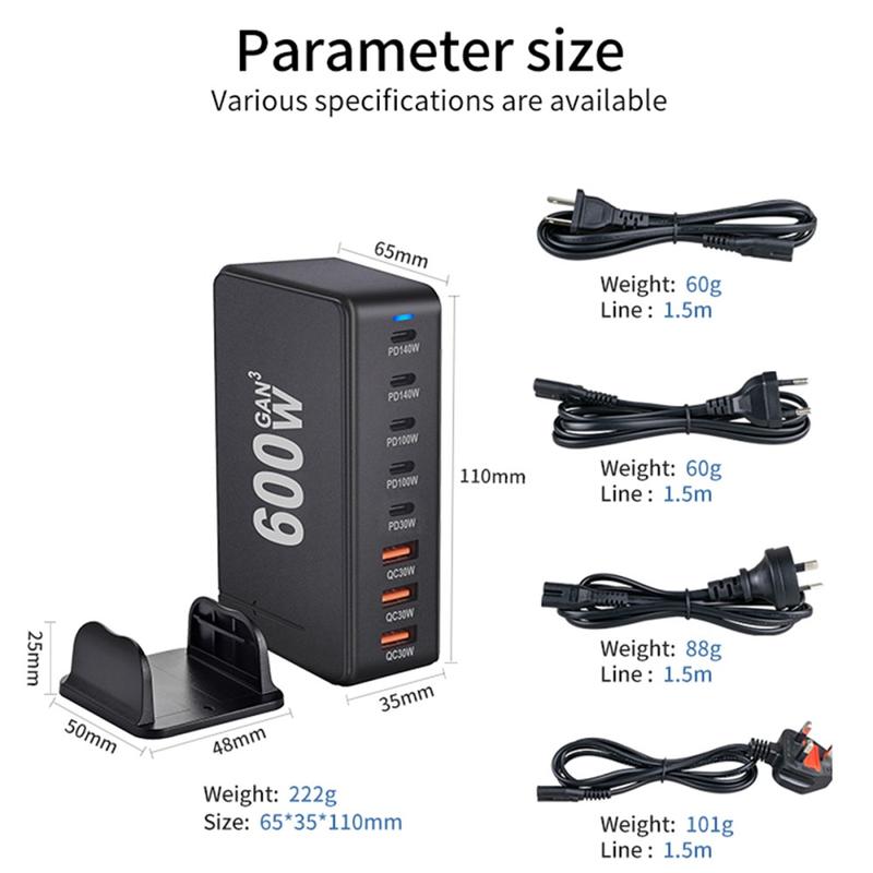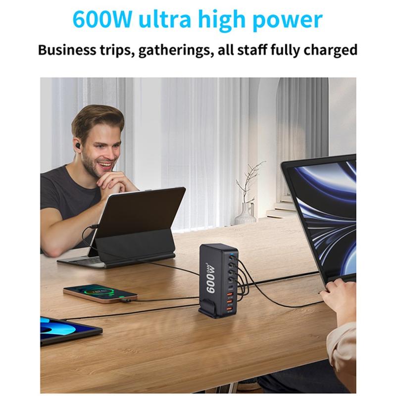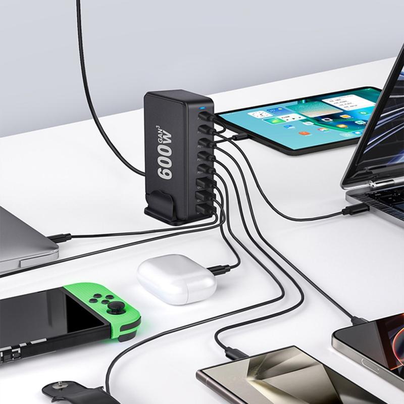- Massive 600W Gesamtleistung für das Aufladen mehrerer Geräte über eine Station