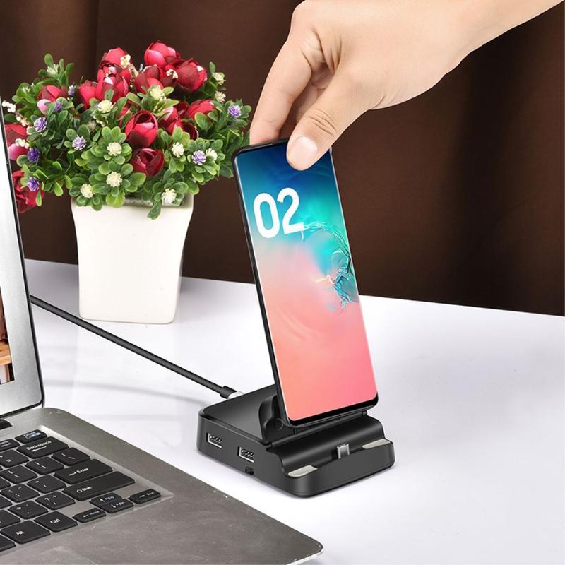 Die Docking Station USB-C verbindet Ihr Telefon mit einem Monitor, verschiedenen externen Geräten und SD/TF-Kartenlesern