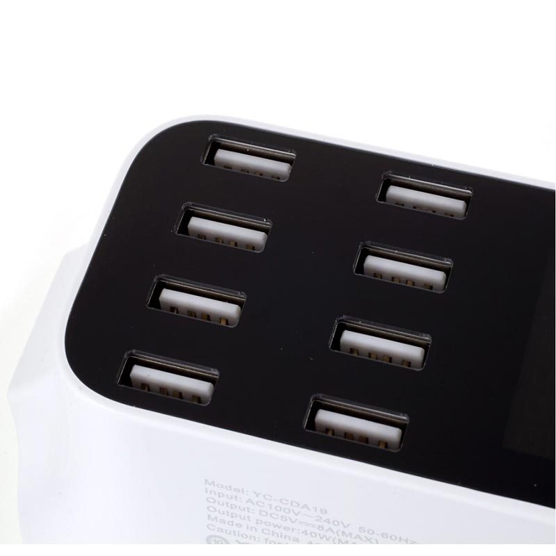 8-Port USB-Desktop-Ladegerät mit LED-Monitor - 8.0A, 5.2V