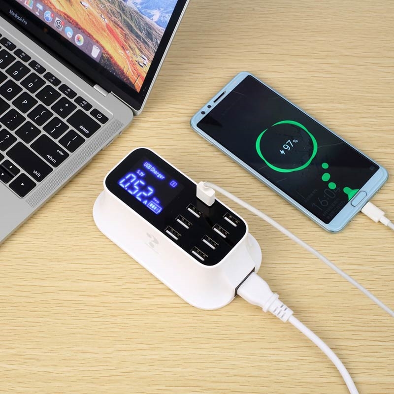 - USB-Desktop-Ladegeräts mit 8 Anschlüssen und LED-Monitor ermöglicht das gleichzeitige Laden von bis zu 8 Geräten