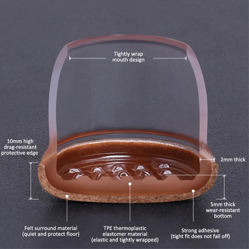 Die Kombination aus hochwertigem TPE und einer glatten Filzunterlage sorgt für eine lang anhaltende Leistung. Die Bezüge lassen sich leicht um die Stuhlbeine wickeln und bieten eine hervorragende Polsterung.