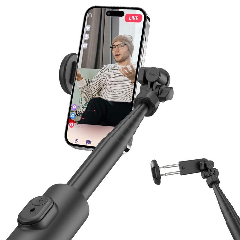 Die meisten Selfie-Sticks haben eine maximale Länge von einem Meter oder wackeln, wenn sie vollständig ausgefahren sind. Der T02 bietet echte Stativstabilität, eine Tragfähigkeit von 3 kg und ein reisefreundliches Gewicht von 0,34 kg. Das All-in-One-Design bedeutet, dass Sie keine zusätzliche Telefonklammer oder Fernbedienung verlieren müssen - einfach aufklappen, verbinden und loslegen.