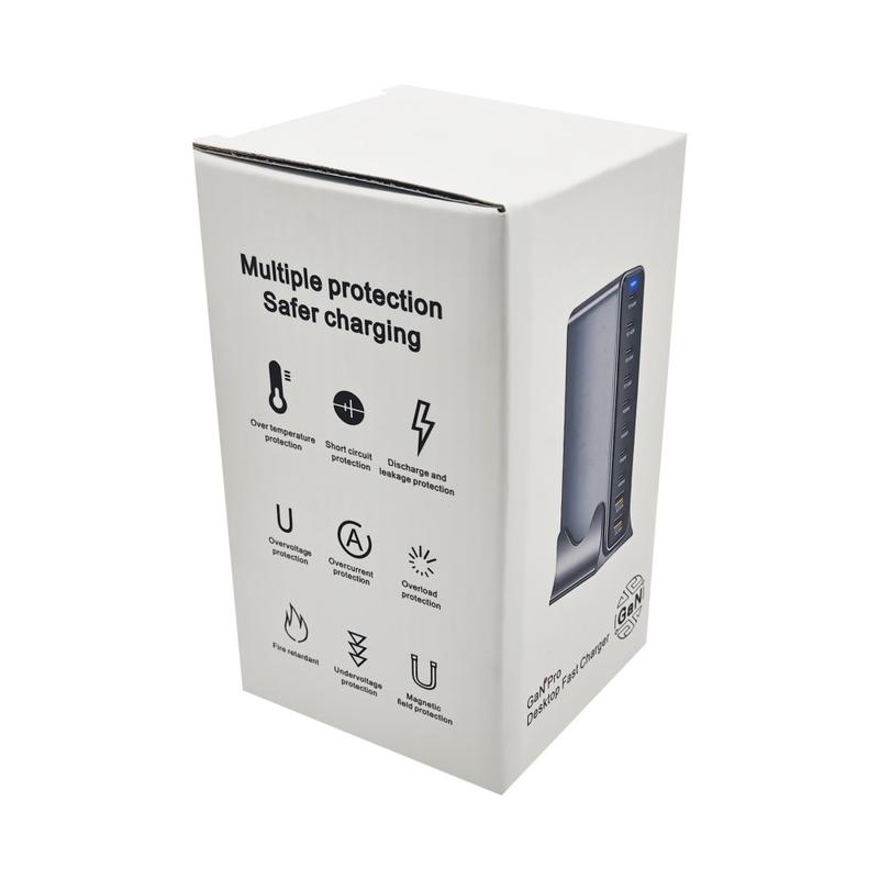 Versorgen Sie Ihren gesamten Schreibtisch mit Strom über einen kompakten Hub mit dieser 800-W-GaN-Desktop-Ladestation. Sie wurde für anspruchsvolle Setups entwickelt und kombiniert mehrere USB-C- und USB-A-Ausgänge, sodass Sie Laptops, Tablets, Telefone und Zubehör gleichzeitig aufladen können - ohne ein Durcheinander von separaten Adaptern. Die GaN-Technologie sorgt für hohe Effizienz bei geringer Wärmeentwicklung und ist somit eine intelligente Wahl für Heimbüros, Studios, Reparaturwerkbänke und gemeinsame Ladebereiche.