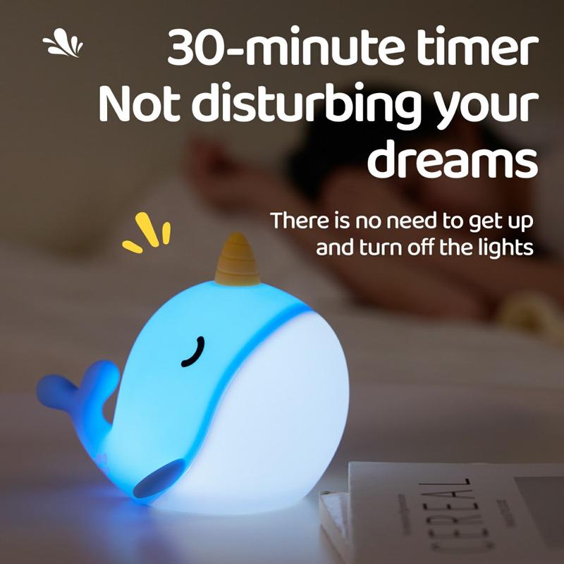 A044 Narwal-Silikon-Nachtlicht - Tippsteuerung, USB-C wiederaufladbar & sanftes Umgebungslicht