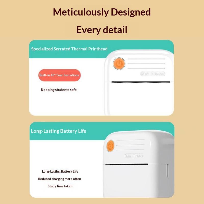 Mit einer Auflösung von 200 dpi liefert er klaren Text und einfache Grafiken, ohne dass Tintenpatronen oder Toner benötigt werden. Die Bluetooth-Verbindung erleichtert die Kopplung mit Ihrem Smartphone, während die AumiLabel-App Zugriff auf Vorlagen für Etiketten, To-do-Listen, Lernnotizen, Fotoabzüge und mehr bietet. Dank seines leichten, tragbaren Designs und des wiederaufladbaren Akkus lässt er sich leicht transportieren und überall dort einsetzen, wo Sie ihn benötigen.