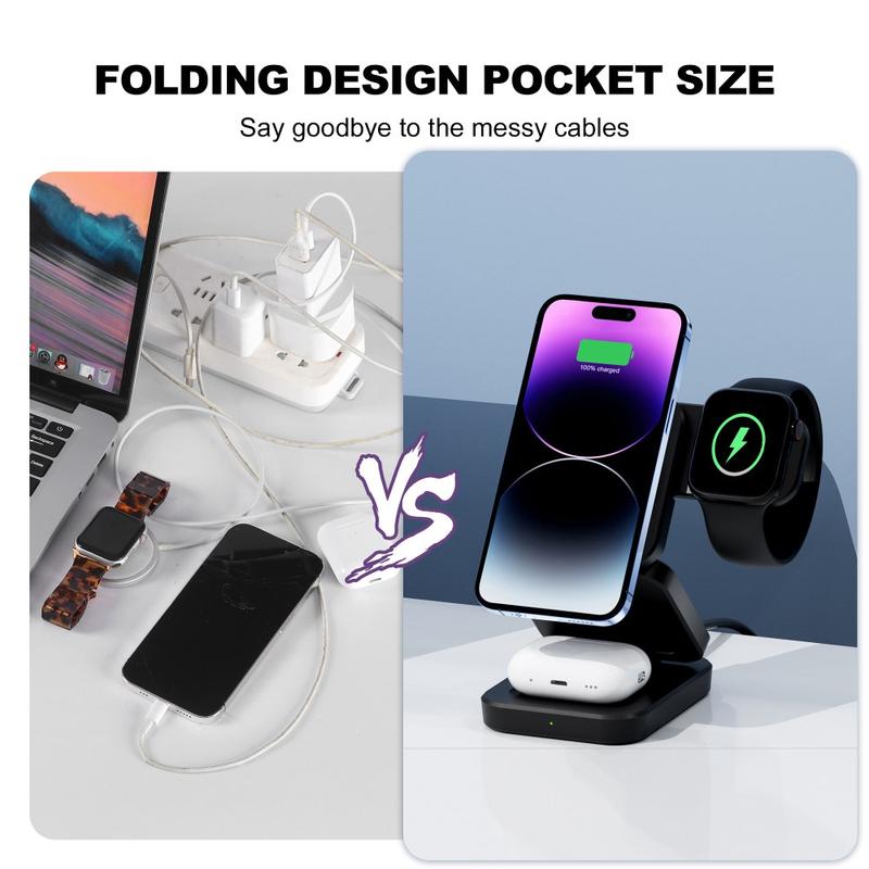 • A390 3-in-1 Magnetisches kabelloses Ladegerät - 15W Schnellladung & klappbare Halterung