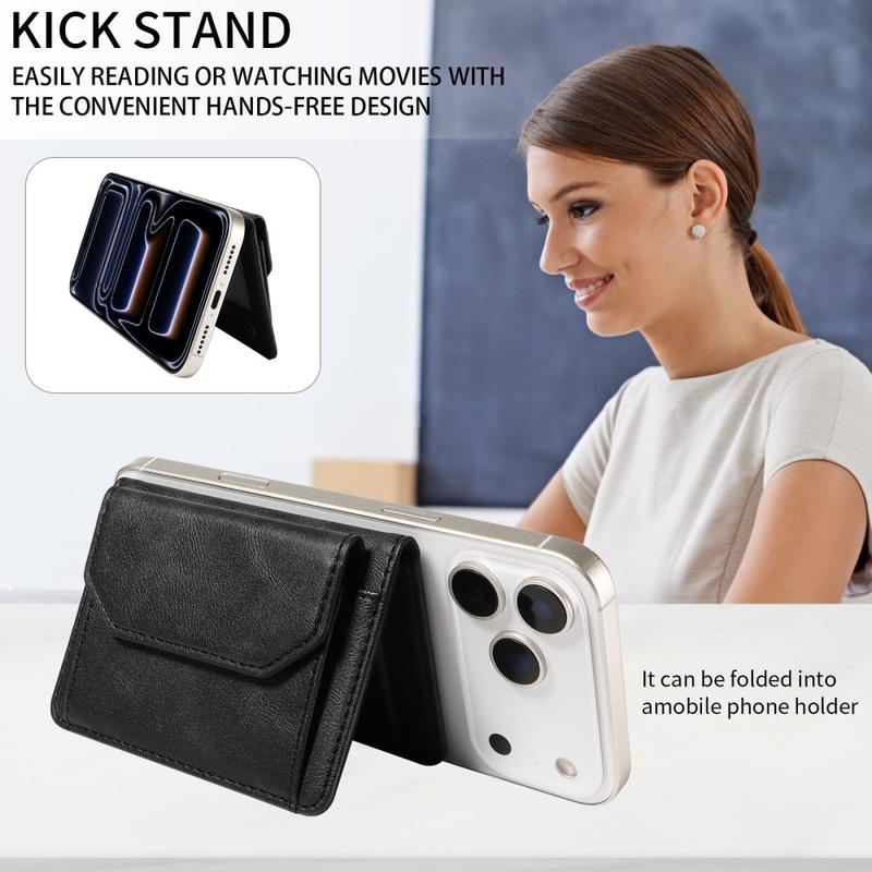Dank der starken Magnetverbindung lässt sich das Portemonnaie fest an der Rückseite kompatibler Handys befestigen. Die starke Ansaugung sorgt für einen stabilen Halt im täglichen Gebrauch und ermöglicht bei Bedarf ein schnelles Entfernen.