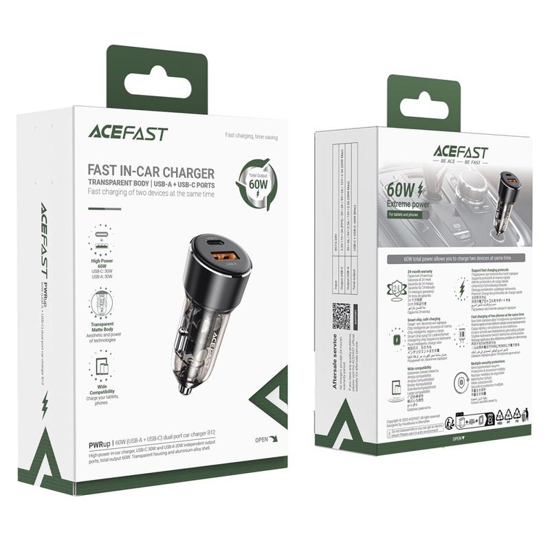 ACEFAST B12 60W USB-A+Typ-C Autoladegerät Zigarettenanzünder Telefon Schnellladeadapter